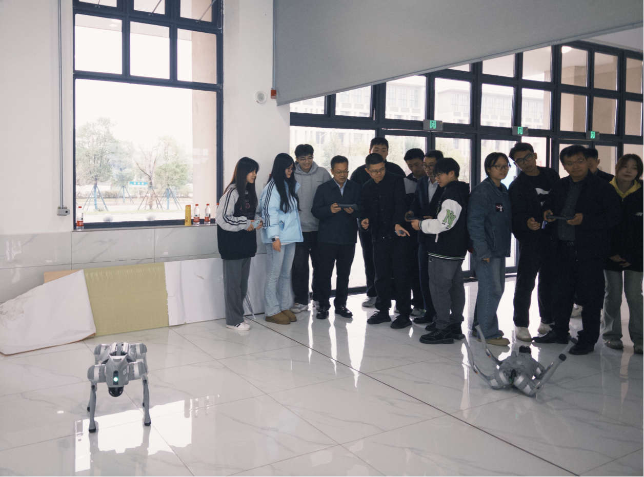学院临时党委书记、法定代表人贺代贵现场体验机器狗操作